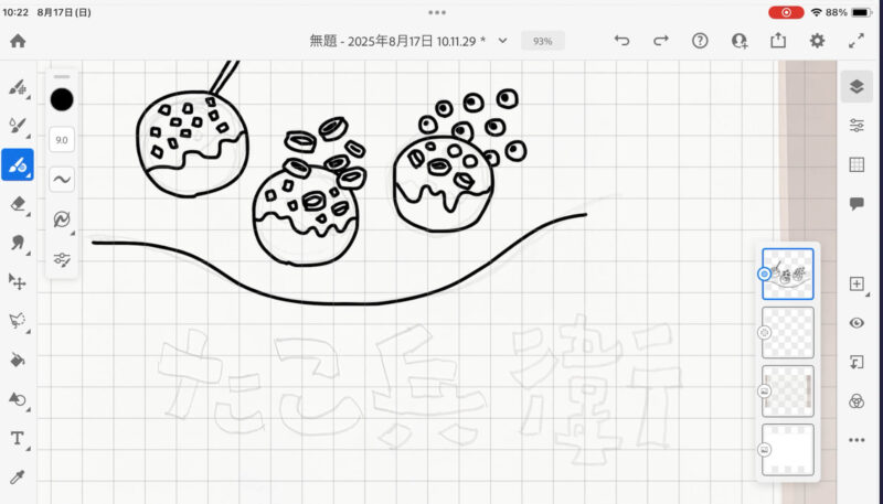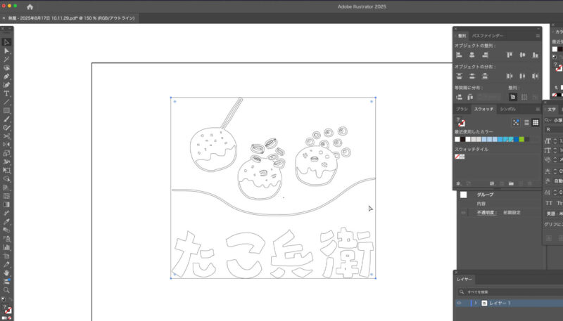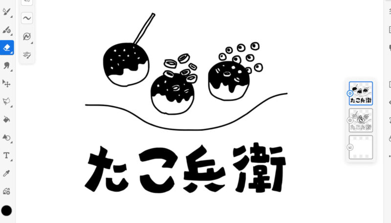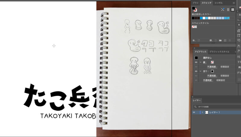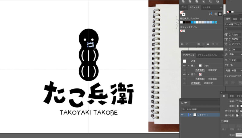 以上、たこ焼き屋さんの架空のロゴの制作風景でした。