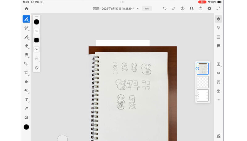 いろいろ悩みましたが、フレスコで描いたタコをペンツールでトレースすることに。